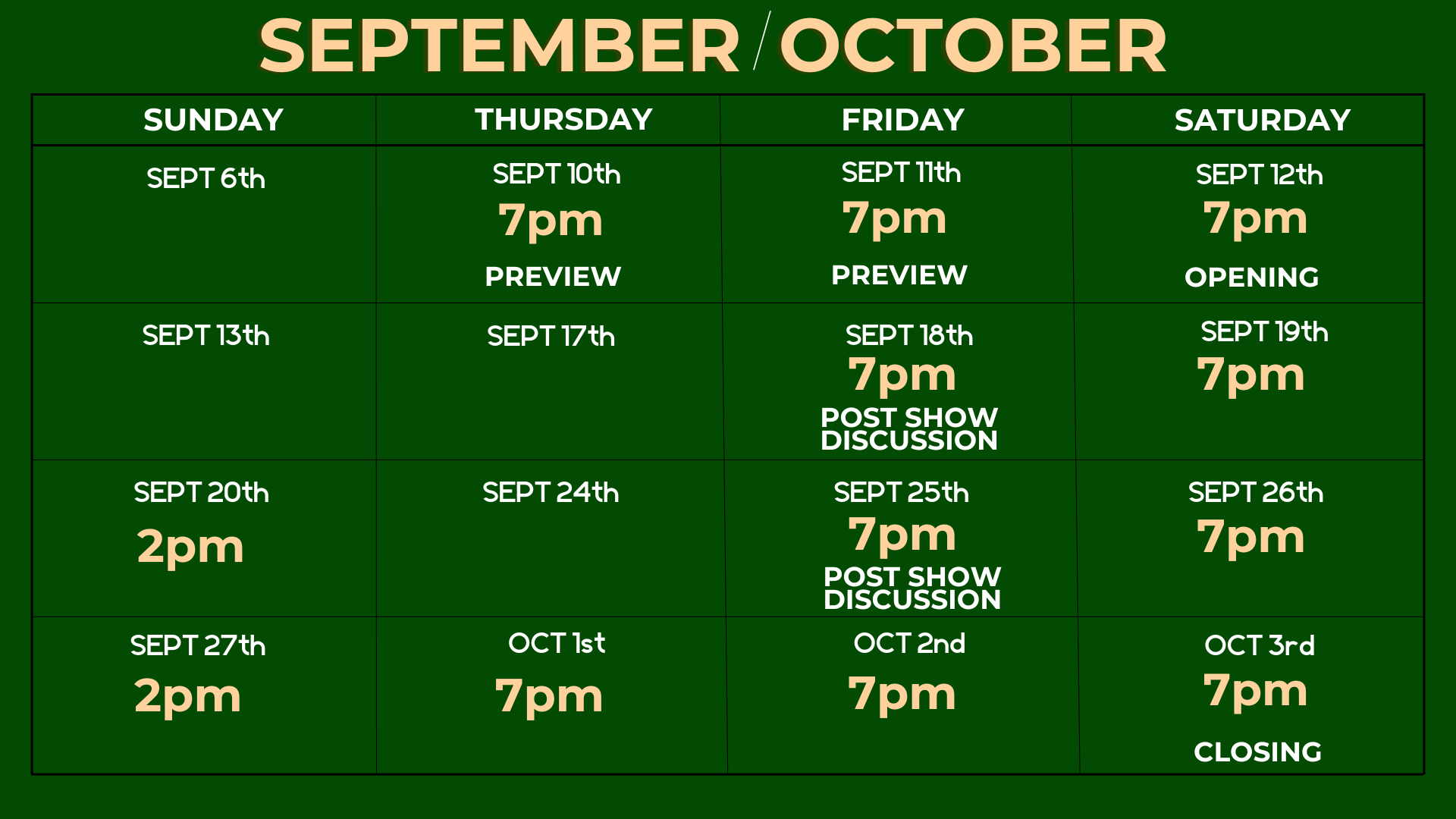 *Pay-What-You-Can tickets available for all performances in advance or at the door