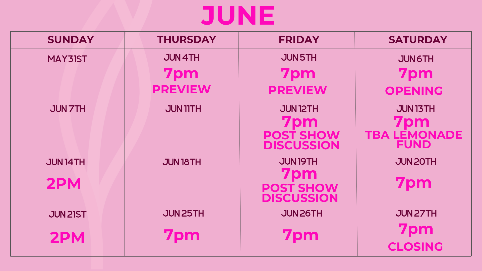 June 6th-27th, 2026